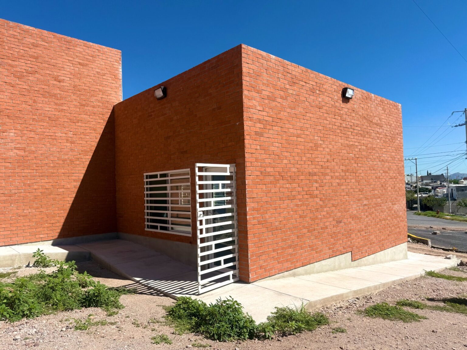 Entre los trabajos ejecutados destaca la instalación de fachaleta tipo ladrillo en el exterior, cableado eléctrico en todo el edificio, colocación de plafón, puertas de madera, trabajos de pintura e instalación de unidades de climatización, garantizando un espacio funcional, moderno y seguro para eventos y actividades comunitarias.