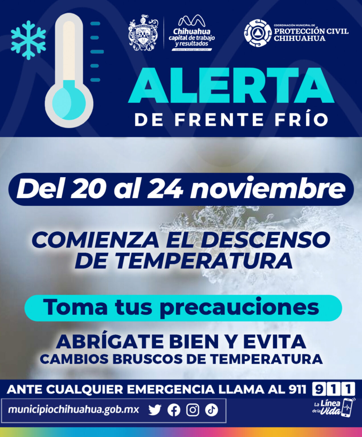 El Gobierno Municipal, a través de la Coordinación Municipal de Protección Civil, informa que la próxima semana del 20 al 24 de noviembre, se prevé un significativo descenso en las temperaturas, motivo por el cual abrirán dos refugios temporales para proteger de las condiciones climáticas a quien más lo necesite.