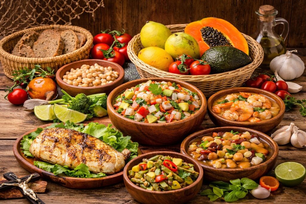 El consumo de pescados y mariscos, ricos en proteínas y ácidos grasos como el omega-3, aporta beneficios al corazón y al cerebro. Además, alimentos típicos como las verduras frescas, legumbres, nopales y frutas de temporada ayudan a mejorar la digestión y fortalecer el sistema inmunológico.