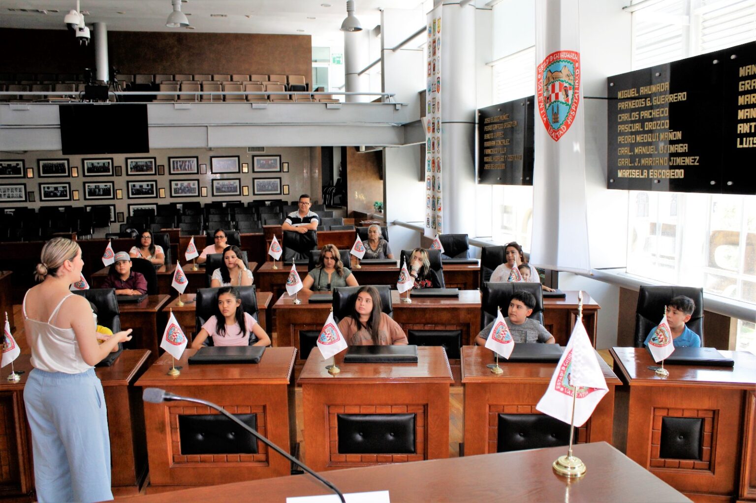 En ese lugar, la morenista explicó a sus invitados cómo es la conformación de los grupos parlamentarios en el pleno, así como el desarrollo de las sesiones y el proceso legislativo que deben tener las iniciativas que se presentan hasta el momento en que son votadas, a favor o en contra, por los 33 diputados.
