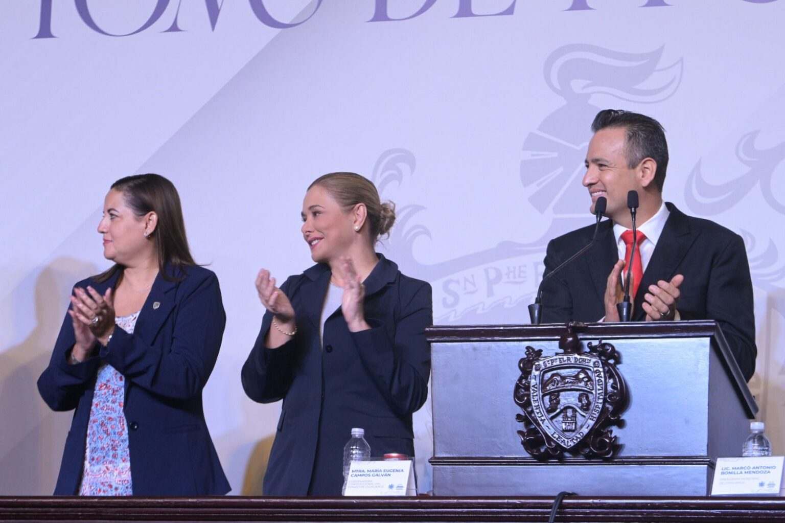 Al emitir su mensaje en la ceremonia de toma protesta del alcalde Marco Bonilla, le extendió una felicitación por el nuevo capítulo que hoy emprende por la ciudad, de la mano de un equipo comprometido que dará continuidad a las labores humanistas que ella empezó hace 8 años.