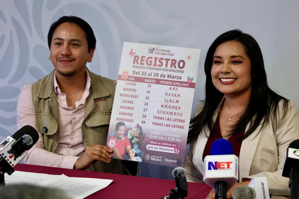 La delegada de Programas para el Bienestar en el estado de Chihuahua, Mayra Chávez Jiménez y el director regional José Luis Rascón, dieron a conocer que, del 23 al 29 de marzo, se realizará el registro a la Pensión para el Bienestar de las Personas con Discapacidad, por un monto de 3 mil 300 pesos bimestrales de manera directa y sin intermediarios a través de la Tarjeta Bienestar. La delegada informó que en el estado de Chihuahua recibirán esta pensión 25 mil 940 personas de 0 a 29 años que viven con discapacidad permanente; 4 mil 523, de ellos, en la región de Chihuahua.
