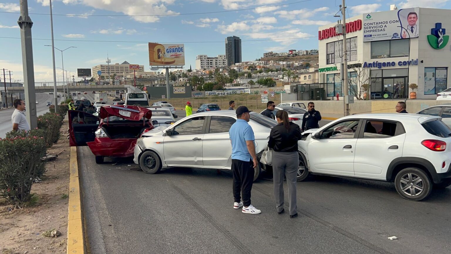 Al menos ocho unidades estuvieron involucradas en el percance, los cuales quedaron colisionados uno tras otro, generando cuantiosos daños materiales, así como algunas personas lesionadas.