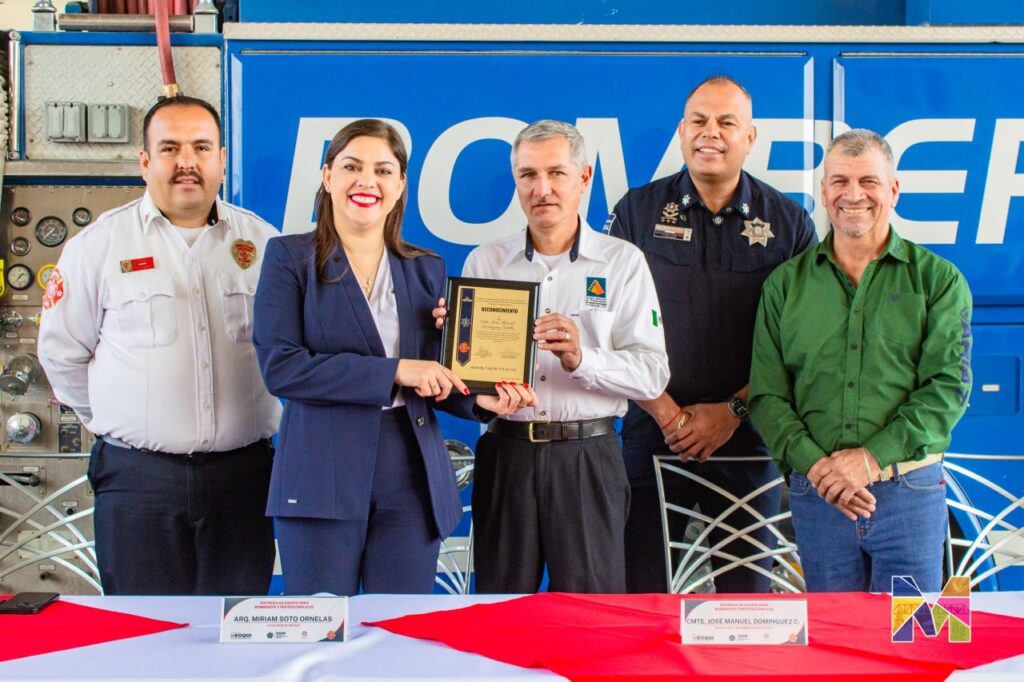 La alcaldesa Miriam Soto encabezó la entrega de equipo al Departamento de Bomberos de Meoqui, donado por el Departamento de Bomberos de El Paso, Texas, en siendo acompañada por su representante, el comandante José Manuel Domínguez, el Cmte. Víctor Orona, Director Seguridad Pública de Meoqui y Eduardo Guillén, Coordinador de Protección Civil y Bomberos. Durante el evento, la alcaldesa informó que el Gobierno Municipal realizó una inversión superior a los 100 mil pesos para la adquisición de un compresor destinado a los equipos de respiración autónoma del personal operativo.