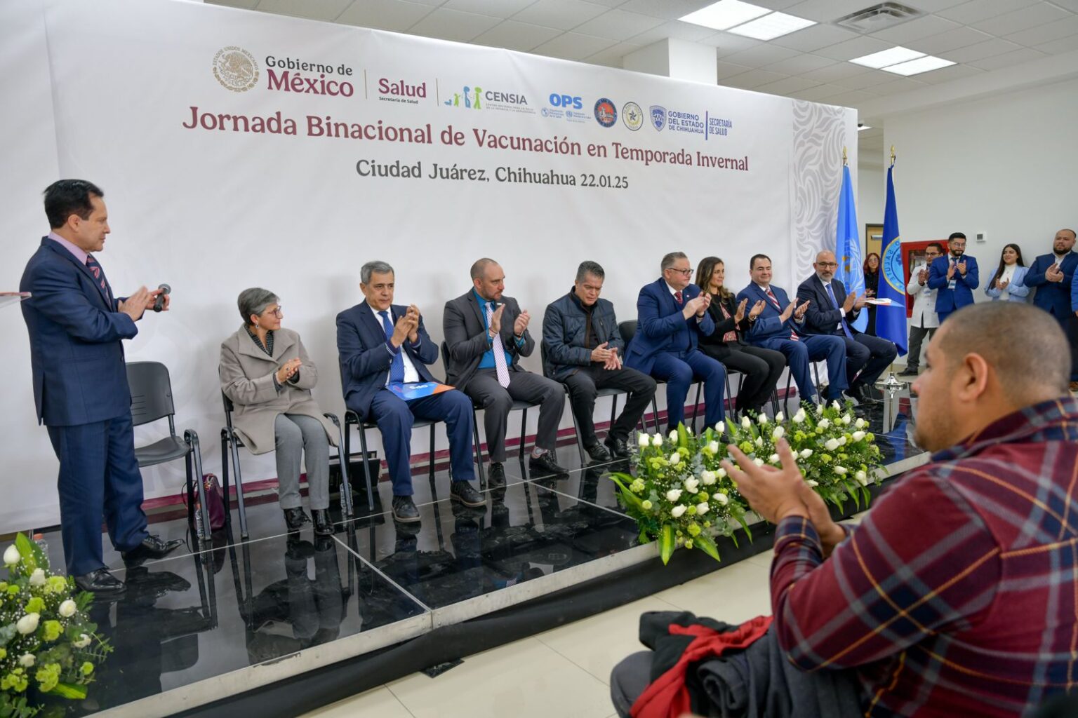 El arranque oficial contó con la participación de autoridades de los gobiernos de ambos países, así como de equipos técnicos del sector salud del Distrito de Juárez, en el marco de la Campaña de Vacunación Temporada Invernal 2024-2025.