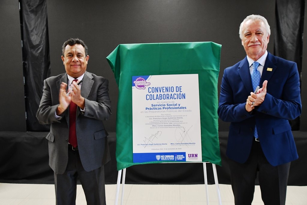 Como parte del acto protocolario, la SEyD y la Universidad Regional del Norte (URN) firmaron un convenio de colaboración en materia de servicio social y prácticas profesionales.