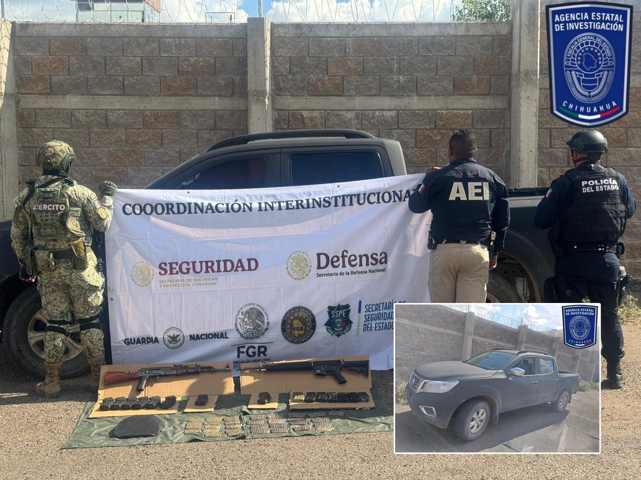 En un operativo conjunto llevado a cabo por elementos de la Agencia Estatal de Investigación en coordinación con elementos del Ejército Mexicano y de la Secretaría de Seguridad Pública Estatal, aseguraron en la carretera Balleza – Guachochi, una pick up robada y en su interior localizaron dos fusiles, cientos de municiones y cargadores.