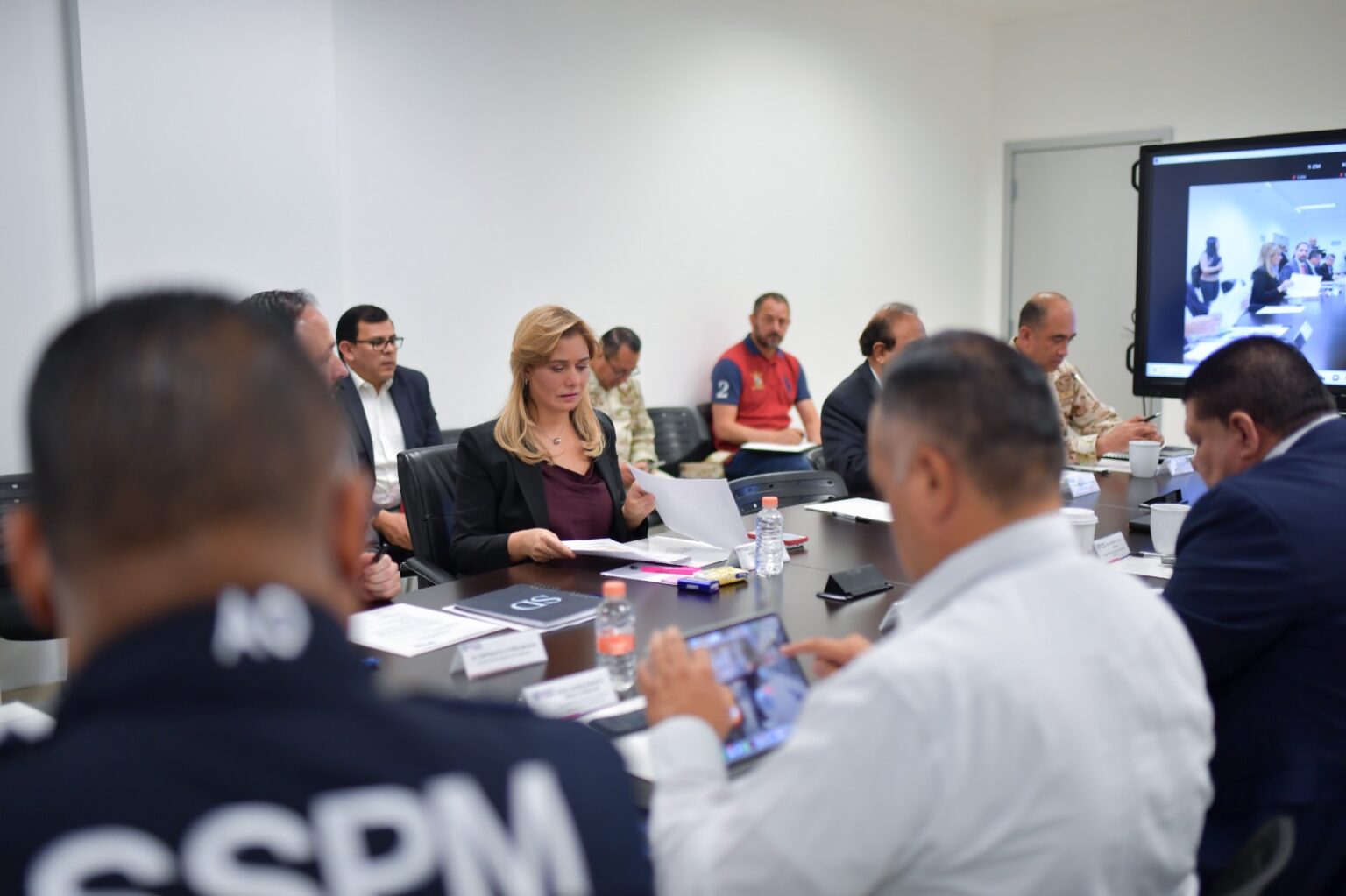 La titular del Ejecutivo estuvo acompañada en la reunión por el secretario de Seguridad Pública, Gilberto Loya; el fiscal general, César Jáuregui; el secretario general de Gobierno, Santiago de la Peña y el fiscal de la Zona Norte, Carlos Manuel Salas.