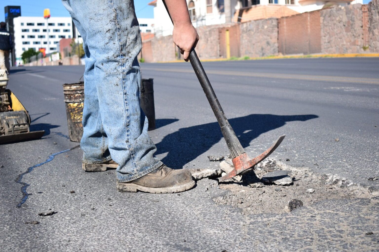 El desgaste diario de las avenidas y calles por el tránsito vehículos, camiones de carga pesada y los cambios bruscos de temperatura, provoca grietas en el pavimento por donde se filtra el agua, ocasionando que las capas de asfalto colapsen creando los baches, los cuales se atienden con una aplicación de mezcla asfáltica caliente en un área previamente perfilada para su mejor adición.