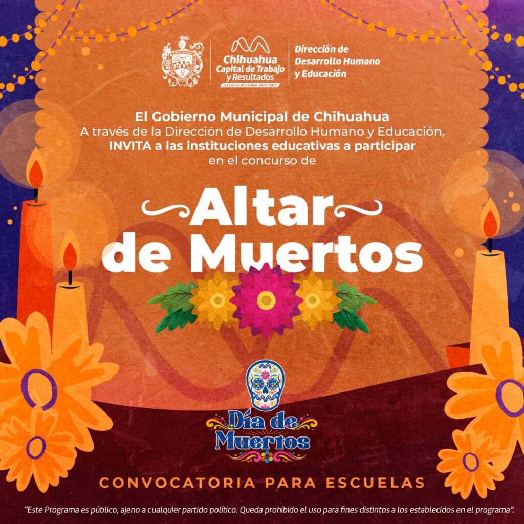 El Gobierno Municipal de Chihuahua, a través de la Dirección de Desarrollo Humano y Educación, te recuerda que aún estás a tiempo de inscribir a tu Institución Educativa en el Concurso de Altar de Muertos 2025.