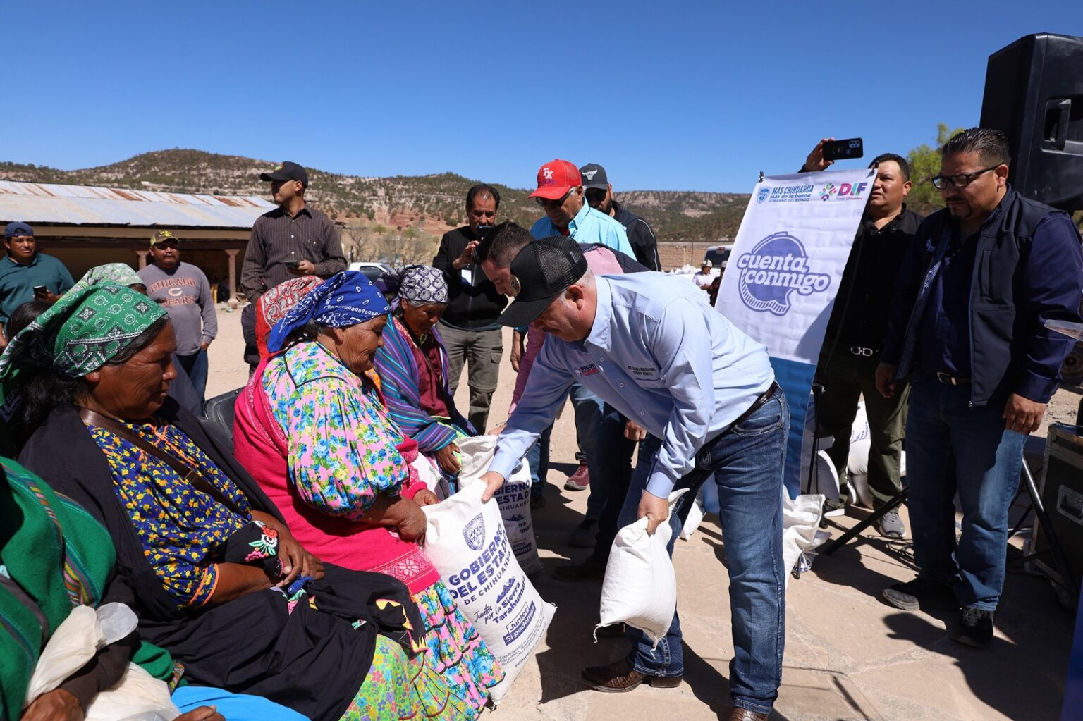 El DIF Estatal, en conjunto con la Secretaría de Pueblos y Comunidades Indígenas (SPyCI), beneficiaron con más de 12 toneladas de alimento a un total de 300 familias de comunidades del municipio de Bocoyna.