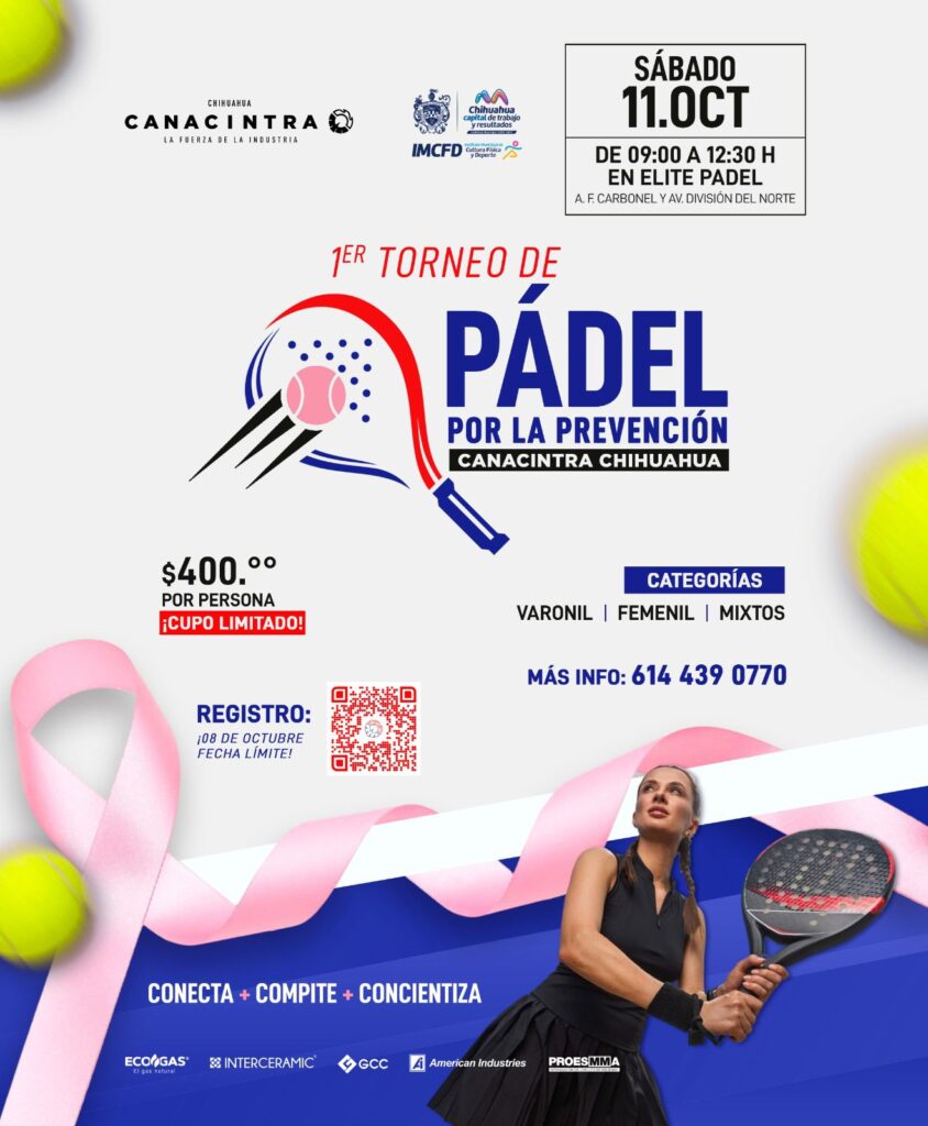 Con el firme compromiso de impulsar la salud, la unión empresarial y la conciencia social, CANACINTRA Chihuahua anuncia la realización del 1er Torneo de Pádel por la Prevención, un evento deportivo que busca reunir a la comunidad en torno al deporte y la solidaridad.