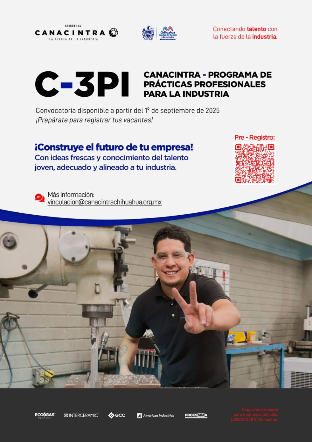 CANACINTRA Chihuahua anunció la apertura del Programa de Prácticas Profesionales para la Industria (C-3PI), una iniciativa que busca conectar el talento universitario con las empresas del sector industrial en la entidad.