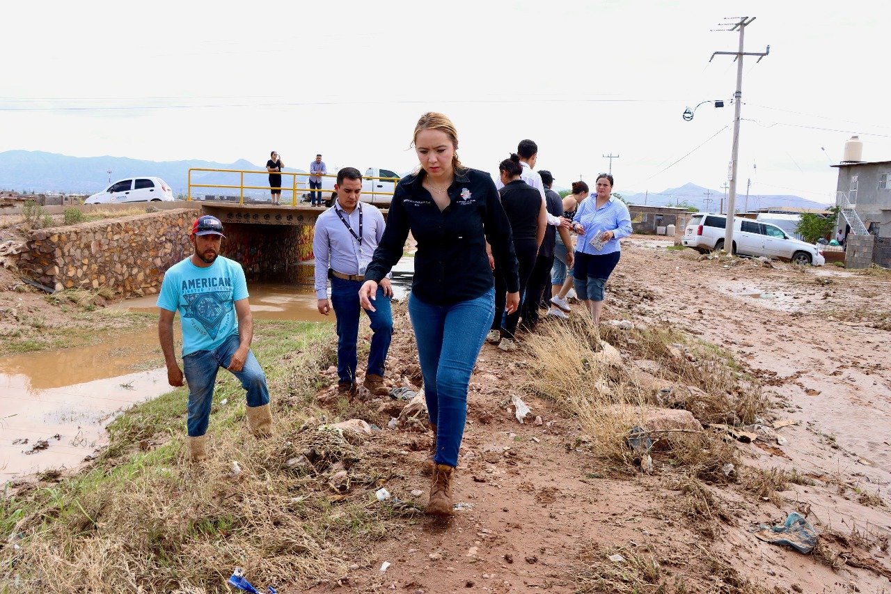 Acompañada de su equipo de trabajo y en colaboración con la Dirección de Obras Públicas, Rivas Martínez acudió a las colonias Valle Dorado, San Joaquín y Las Torres con la firme instrucción de brindar ayuda inmediata a quienes lo necesitaran pues muchas familias pasaron la noche sin dormir, tratando de sacar el agua que entró a sus viviendas.