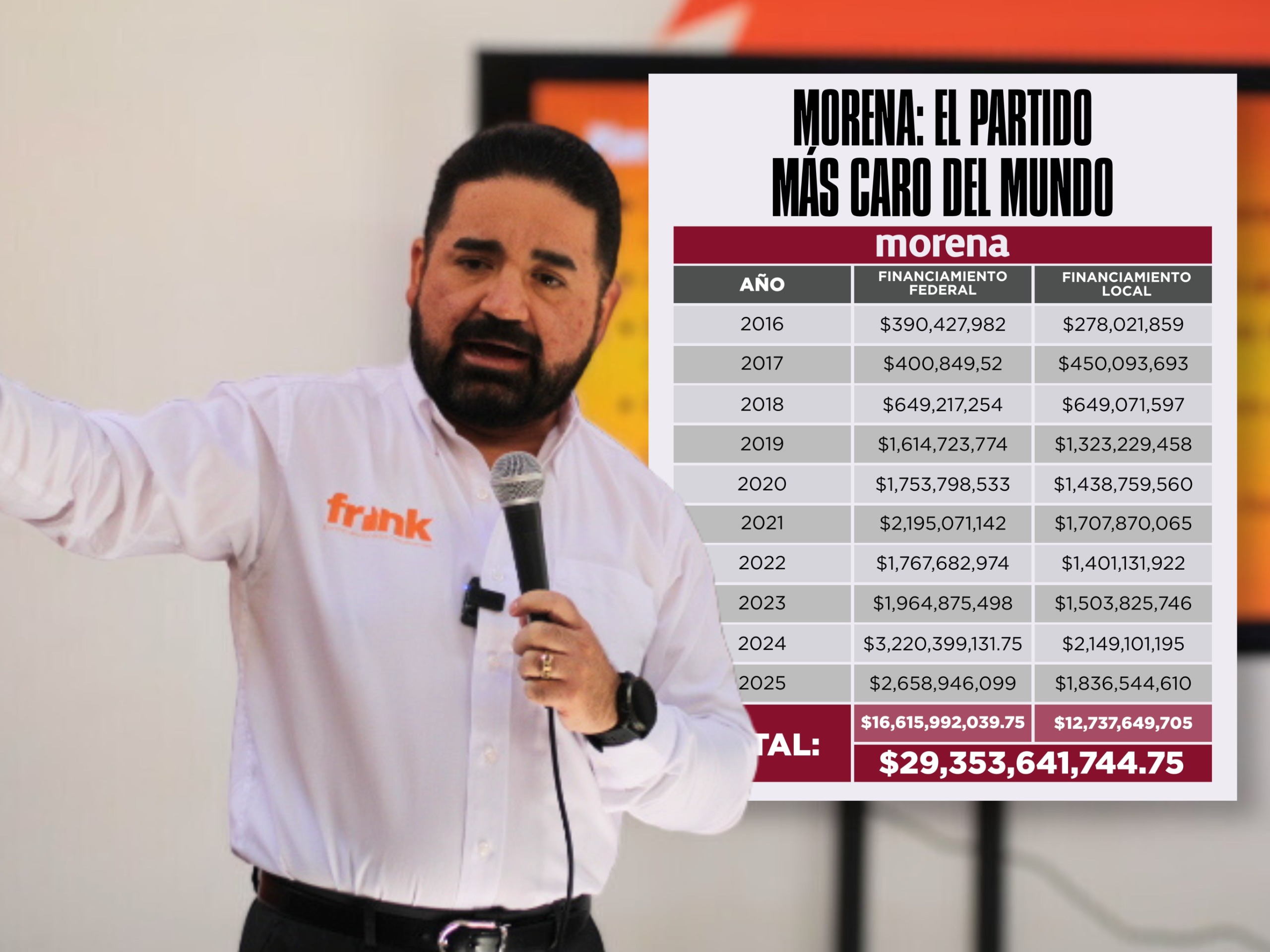 Francisco Sánchez informó que tan solo para este 2025 se le entregan a Morena más de 4 mil millones de pesos de financiamiento público.