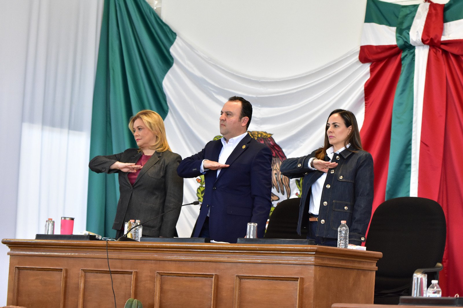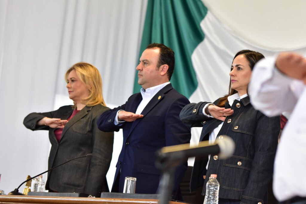 Durante los festejos realizados en Cuchillo Parado por el 115 Aniversario del Inicio de la Revolución Mexicana, las y los diputados de la 68 Legislatura realizaron una Sesión Solemne conmemorativa en la que se contó con la presencia de la gobernadora María Eugenia Campos y de la presidenta del Tribunal Superior de Justicia, Marcela Herrera.