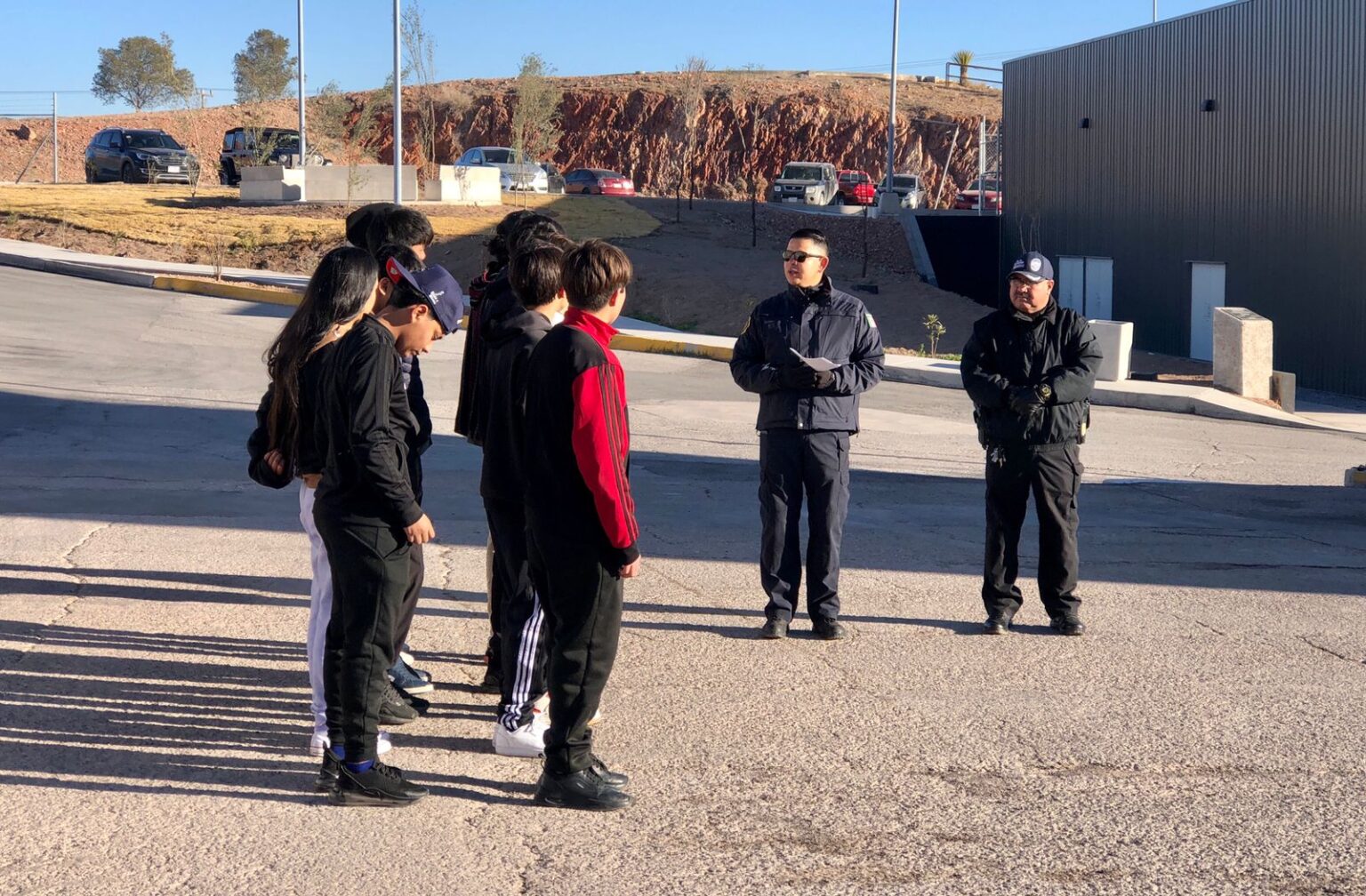 Estudiantes de preparatoria, quienes pertenecen a un club de futbol, conocieron y recorrieron el Instituto Superior de Seguridad Chihuahua (ISSCUU) para conocer la labor que realizan los elementos de policía municipal y bomberos de la Dirección de Seguridad Pública Municipal (DSPM) con el programa “Cadete por un día”.