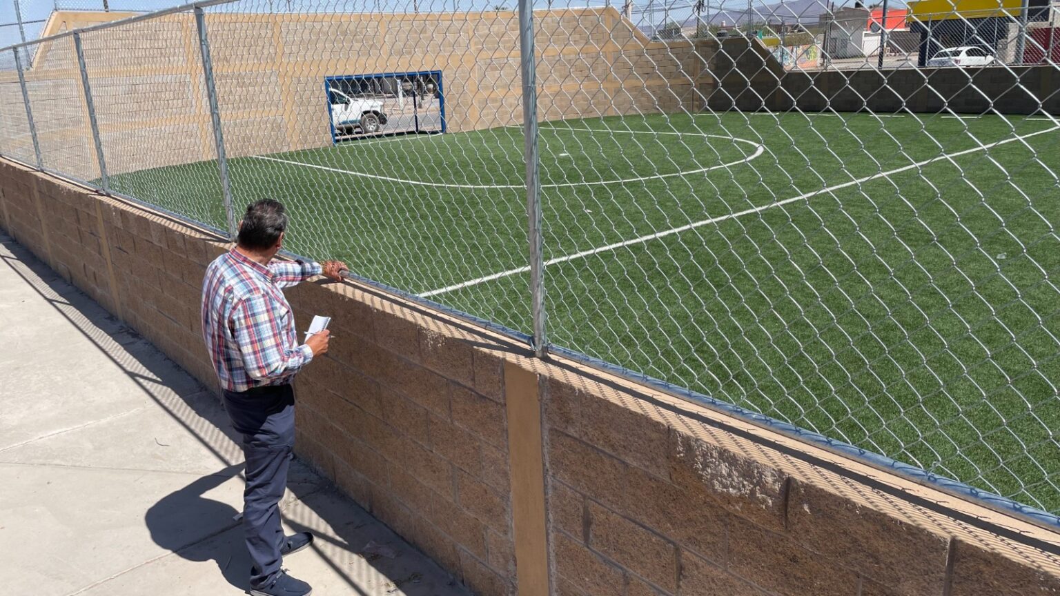 Además, personal de ambas dependencias a vigilado de cerca la cancha de futbol 7×7 ubicada en la colonia Sierra Azul, cubierta de pasto sintético, rodeada de una cubierta de maya y cimientos.