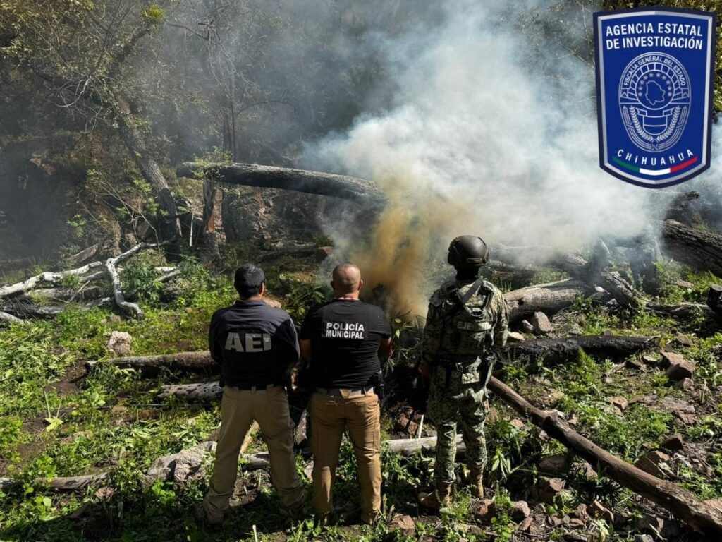 Al continuar los operativos coordinados entre la Agencia Estatal de Investigación, la Secretaría de la Defensa Nacional a de la SEDENA y la Dirección de Seguridad Pública Municipal, al norte del municipio de Chihuahua, se ubicaron cuatro sembradíos más de mariguana, por lo que se procedió a su destrucción de más de una tonelada del enervante.