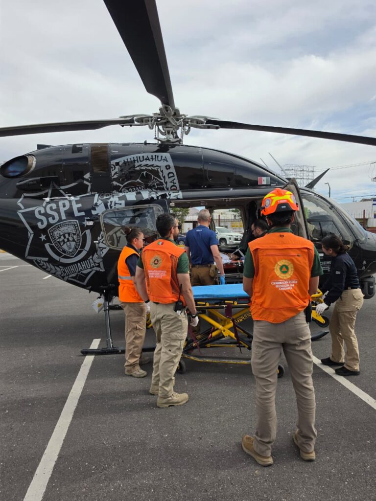 Al arribar a la ciudad de Chihuahua, el helicóptero realizó el aterrizaje en las inmediaciones del Centro de Convenciones. En tierra, paramédicos de la Unidad de Rescate del Gobierno del Estado (URGE) ya se encontraban listos con una ambulancia de cuidados intensivos para recibir a la paciente. Tras el desembarque, se procedió de inmediato al traslado vía terrestre, con el apoyo de unidades de vialidad para garantizar un trayecto libre de obstáculos y reducir al máximo los tiempos de respuesta.