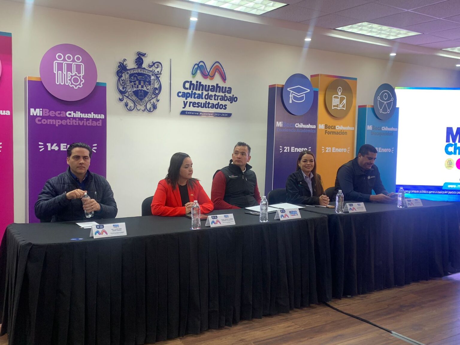 El alcalde de Chihuahua, Marco Bonilla Mendoza, encabezó la presentación del programa Mi Beca Chihuahua 2024 donde se dieron a conocer las fechas en que se publicarán las convocatorias para aplicar a este estímulo en Deporte, Discapacidad, Competitividad, Formación, Excelencia y en el programa Alimentario al Adulto Mayor.