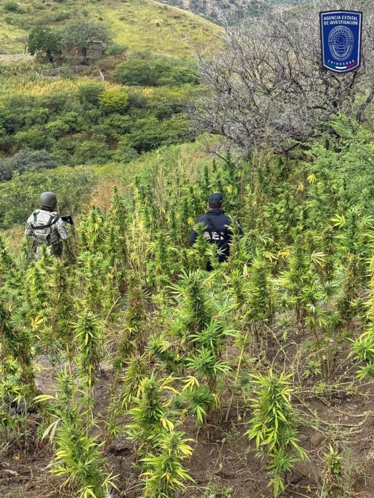Elementos de la Agencia Estatal de Investigación en coordinación con personal de la Secretaría de Defensa Nacional, destruyeron un plantío de mariguana que localizaron ayer lunes en El Saucillo, del municipio de Ocampo.