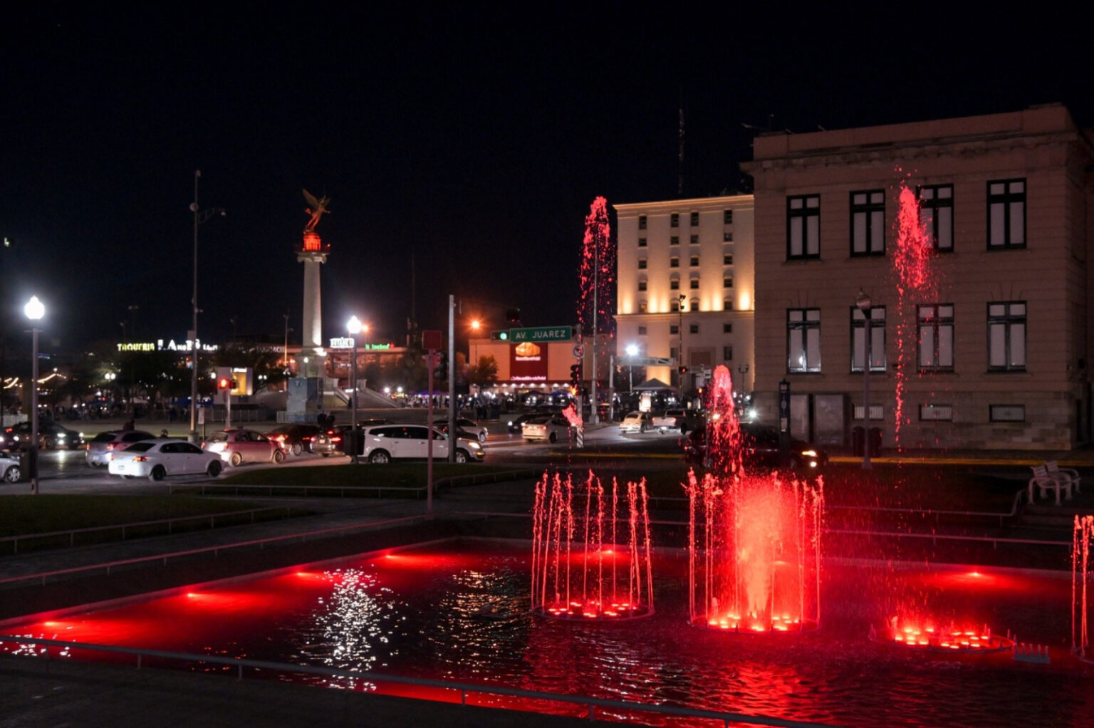 En el marco del Día Internacional del Rotario, que se conmemora el 23 de febrero de cada año, espacios públicos y monumentos emblemáticos de Chihuahua fueron iluminados de rojo, para reconocer y concientizar sobre el trabajo social, que el organismo realiza en beneficio de la comunidad.