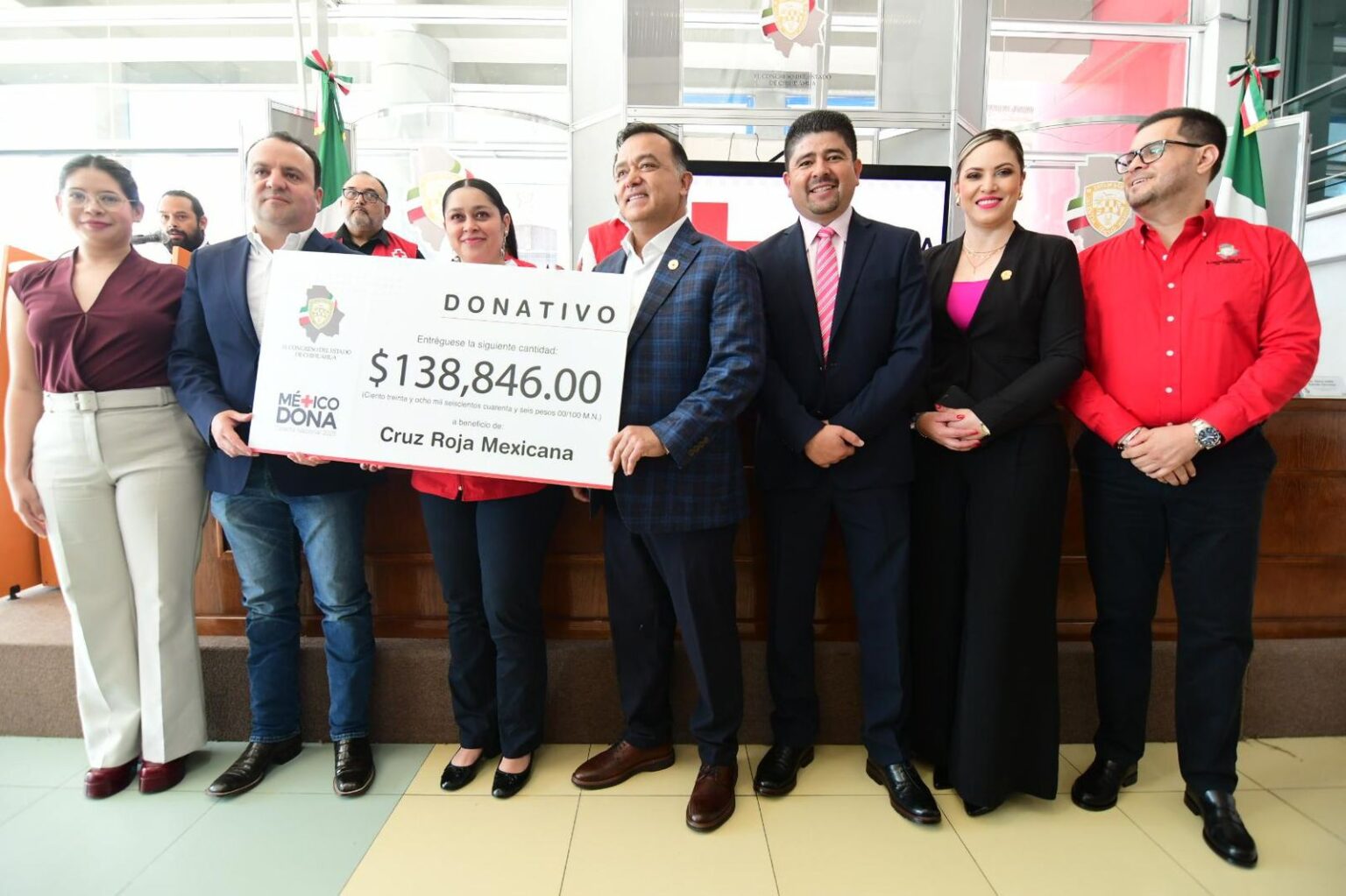 Durante la ceremonia, celebrada en el Mezanine del Edificio Legislativo, el legislador encabezó la entrega del cheque simbólico por un monto de $138,846.00 (ciento treinta y ocho mil ochocientos cuarenta y seis pesos), destacando el valor de la solidaridad y la participación del personal del Congreso en esta colecta.