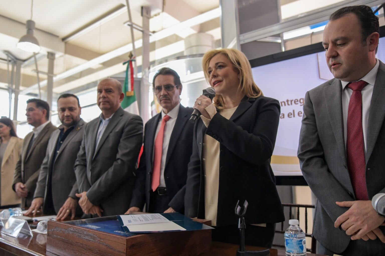 La gobernadora Maru Campos acompañada de los secretarios de Hacienda, José de Jesús Granillo y general de Gobierno, Santiago De la Peña, entregó al Congreso del Estado el Paquete Económico 2026, que contempla un presupuesto de 117 mil 029 millones de pesos (mdp).