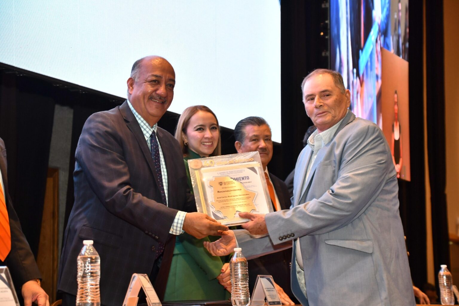 Durante la ceremonia las autoridades también entregaron placas a los docentes con la mayor antigüedad, como es Francisco Javier Rocha, maestro activo de la Normal Superior “Profr. José E. Medrano R.”, con 43 años de servicio ininterrumpido.