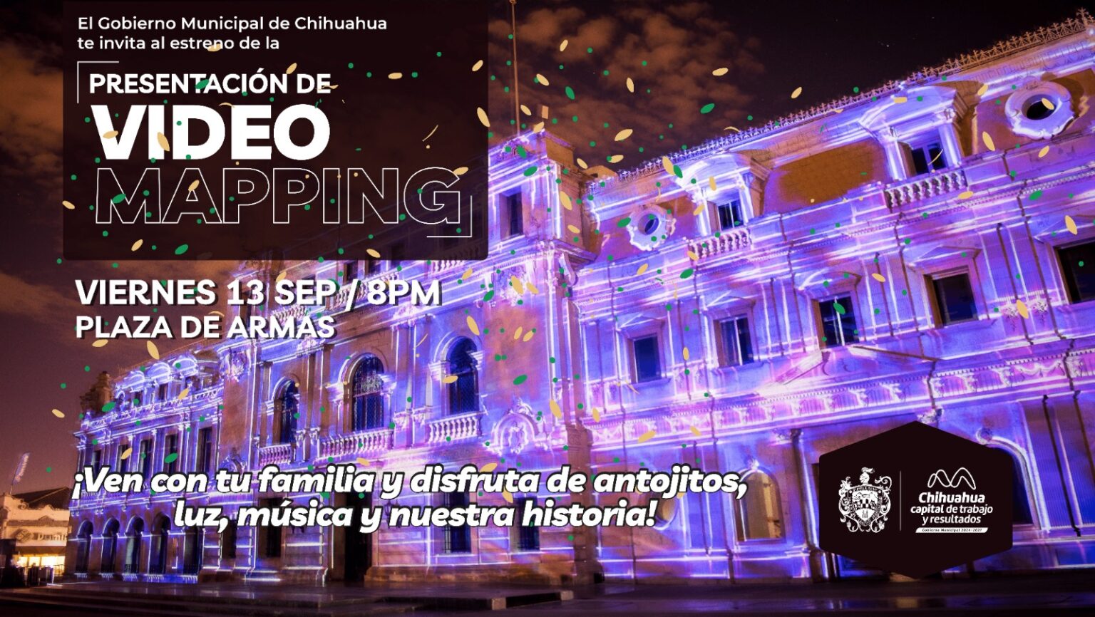 El Gobierno Municipal invitó a disfrutar hoy de la inauguración del “Video Mapping”, donde por primera vez en Chihuahua Capital, se tendrá un espectáculo de este tipo con motivo de las fiestas patrias, y hoy será el primero de los 10 días de presentaciones en la Plaza de Armas.
