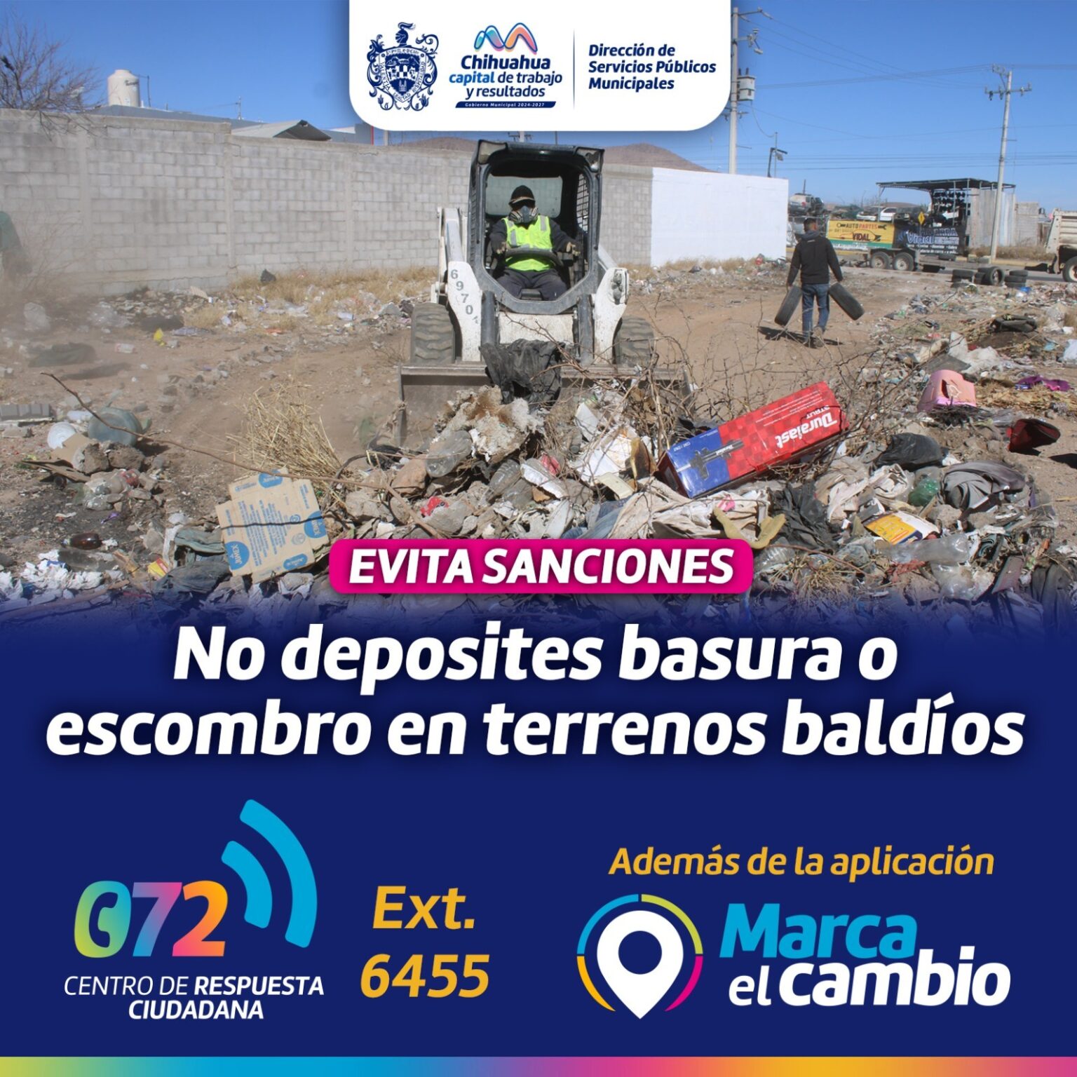 Con el objetivo de mantener una buena imagen urbana, el Gobierno Municipal, a través de la Dirección de Servicios Públicos Municipales, exhortó a la población en general a evitar tirar basura o escombro en viviendas abandonadas y terrenos baldíos de la ciudad.