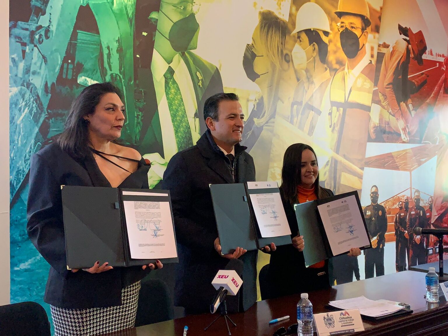 El alcalde de Chihuahua, Marco Bonilla, y la presidenta del Instituto Estatal Electoral (IEE), Yanko Durán, encabezaron una firma de convenio para trabajar en conjunto y tener acompañamiento del instituto, durante el proceso de la consulta ciudadana del Presupuesto Participativo 2024, que será este sábado 25 y domingo 26 de noviembre, de 9 de la mañana a 7 de la tarde.
