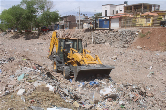 Con maquinaria pesada, personal de la dependencia en mención se encarga de retirar la basura acumulada, además de remover el escombro que la ciudadanía deposita en estos espacios, esto, para evitar taponamientos que a su vez podrían derivar en una inundación.