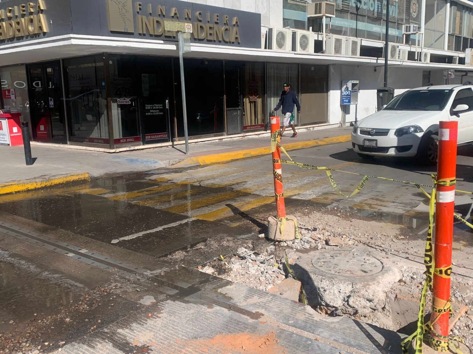 Una fuga de agua se hace presente sobre la avenida Independencia y calle Ojinaga desde hace más de tres semanas.