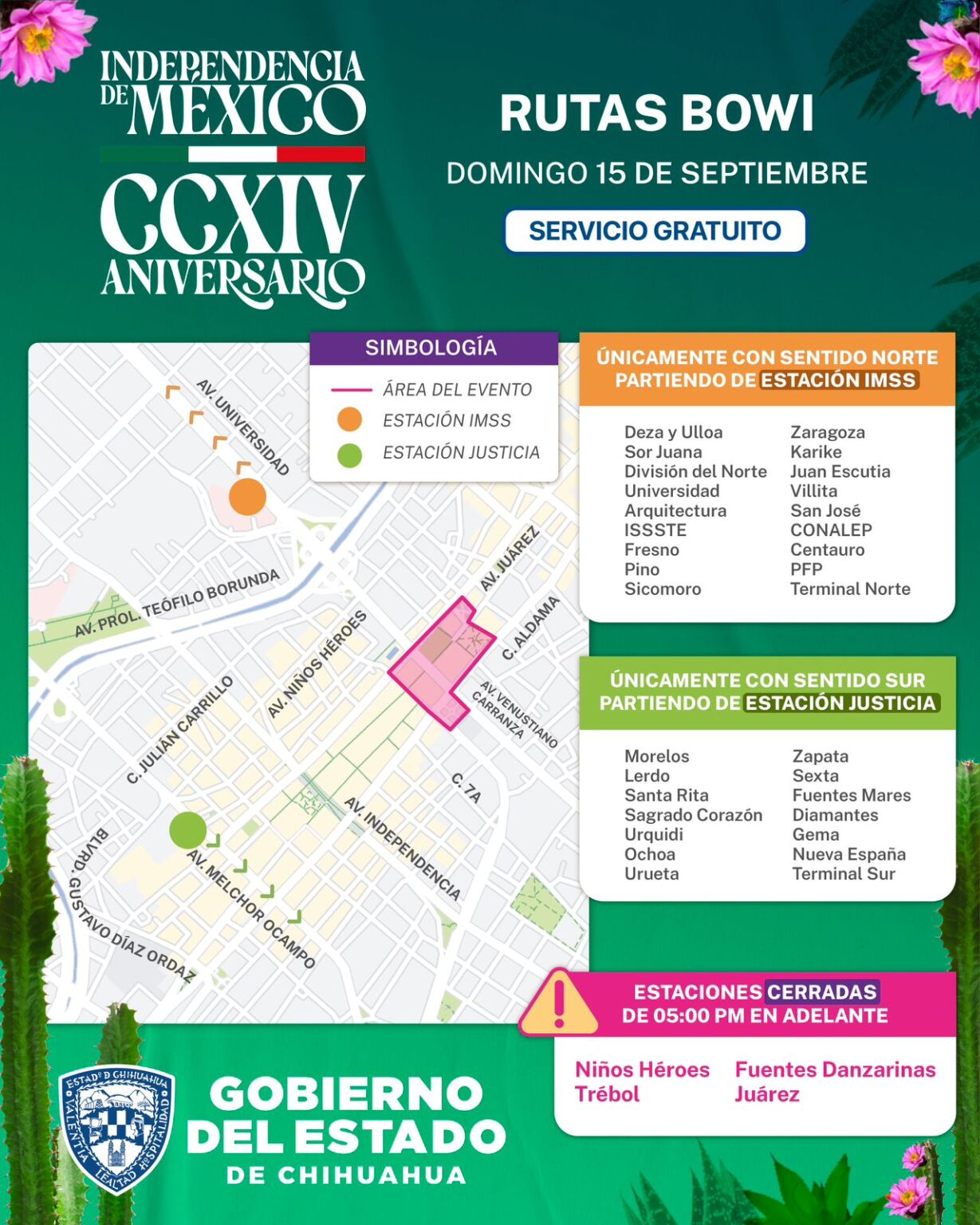 Se invita a toda la ciudadanía a acudir a la Plaza del Ángel utilizando el servicio de Bowí para ser parte de las fiestas patrias, evento que será encabezado por la Gobernadora Maru Campos.