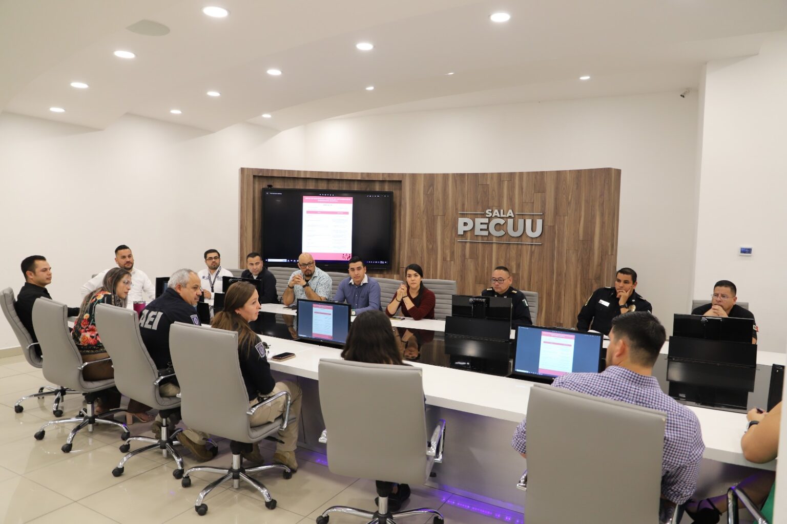 Colaboradores de las cadenas Carne Mart, OXXO y Circle K, sostuvieron una reunión inicial con funcionarios de la dependencia policial en la Sala PECUU de la Comandancia Norte, a fin de compartir estadísticas, datos y los proyectos que servirán para prevenir todo tipo robos y actuar de manera inmediata en caso de presentarse hurtos u otras situaciones que requieran la presencia de la autoridad municipal.