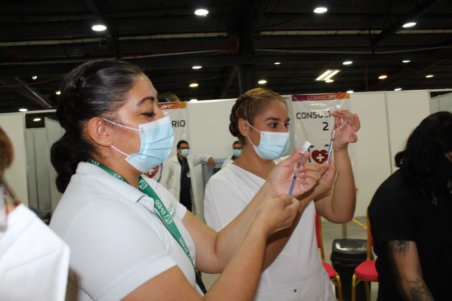 Personal de enfermería y médico, de las diferentes unidades médicas del Instituto Mexicano del Seguro Social (IMSS) en Chihuahua, participa de manera activa en la aplicación de la vacunación contra COVID-19 a adultos de 40 a 49 años y a embarazadas a partir de la novena semana de gestación.