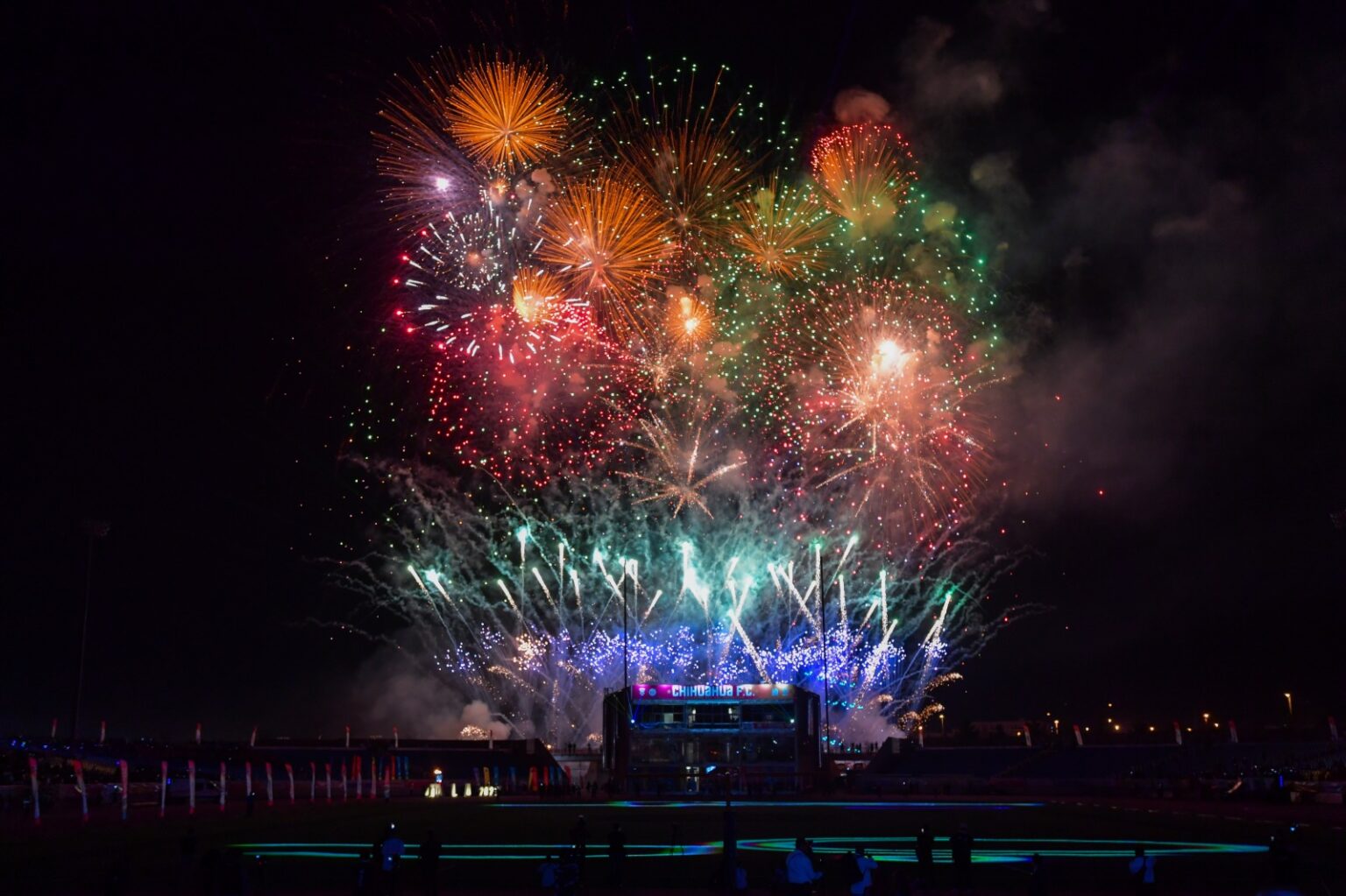 Una vez pronunciada la declaratoria inaugural por parte de la obernadora, la ceremonia culminó con un espectacular show de drones, láser y pirotecnia, acorde a la magnitud de la fiesta deportiva.