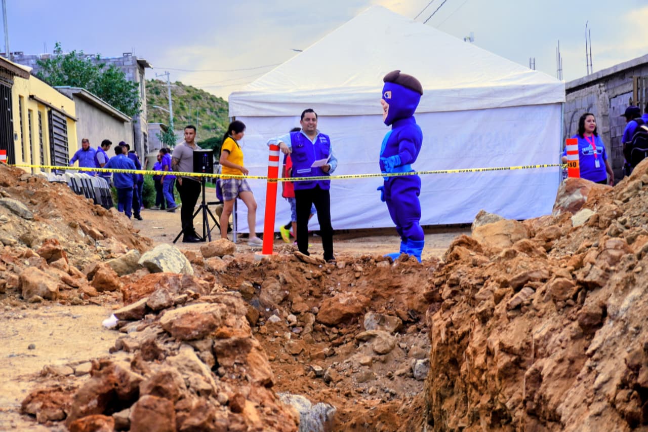 El director de la JMAS Chihuahua, Alan Falomir, mencionó que con esta obra se da cumplimiento de la instrucción de la gobernadora Maru Campos, de avanzar en la cobertura total en agua potable y drenaje en la capital del estado.