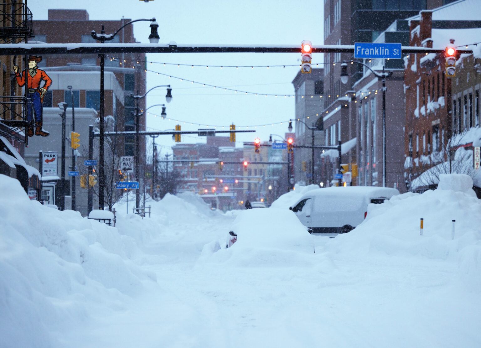 Hacía décadas que esta ciudad, fronteriza con Canadá y acostumbrada al frío, no vivía un invierno tan duro. Ha quedado totalmente colapsada por la nieve y permanece cerrado su aeropuerto, que da cobertura a las famosas cataratas del Niágara.