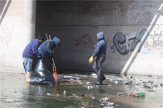 Asimismo, con cuadrillas manuales se atiende la pepena de basura que se arrastra con el agua o que personas en situación de calle depositan en el lugar, además del corte de hierba que crece en los taludes de este espacio.