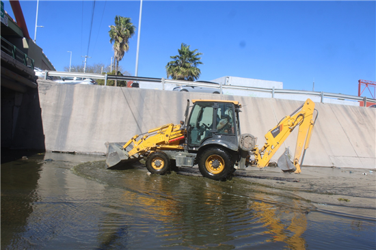 Con maquinaria pesada, así como cuadrillas manuales, se trabaja en la atención y limpieza de este punto, desde la calle María Luisa, hasta su culminación en la vialidad Sacramento.