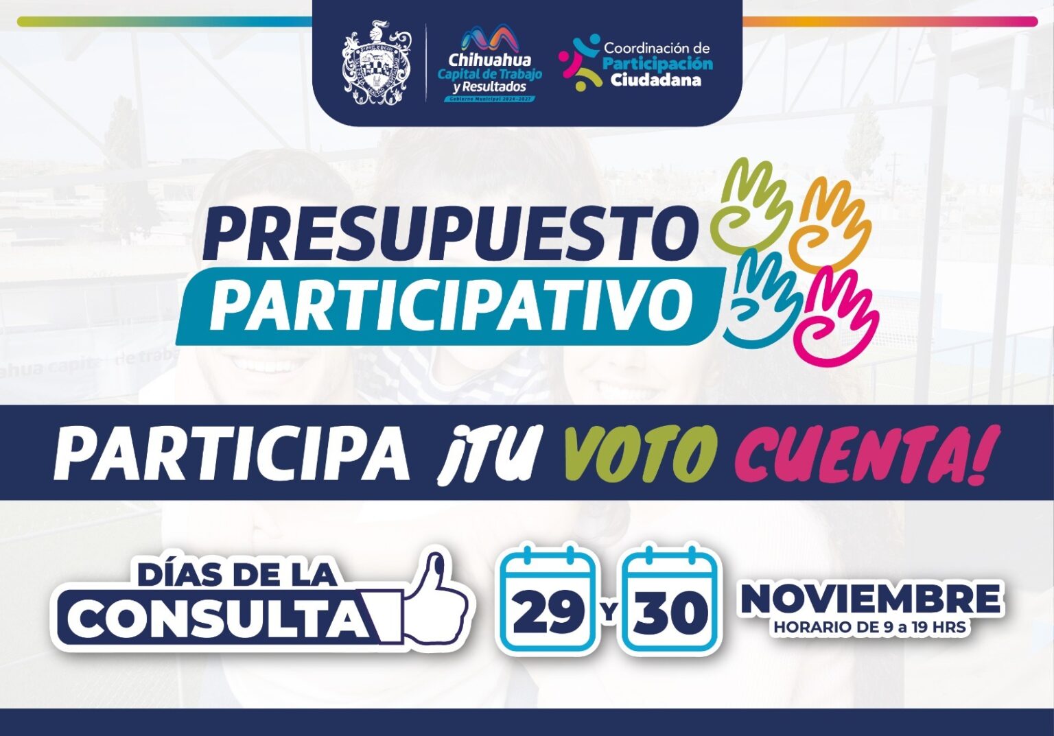 La consulta se llevará a cabo los días 29 y 30 de noviembre, donde las y los chihuahuenses decidirán qué proyectos deberán financiarse en distintas colonias de la ciudad para el 2026.
