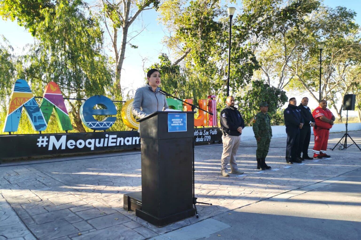 “Con esto no solo buscamos inhibir algún acto delictivo, buscamos tener una navidad blanca con la suma de esfuerzos de todas las corporaciones participantes y haciendo un llamado de conciencia a la ciudadanía”, así dio arranque la alcaldesa de Meoqui Miriam Soto al Operativo Navideño 2022, en el cual trabajarán coordinadamente las distintas corporaciones de seguridad de los tres niveles de gobierno.