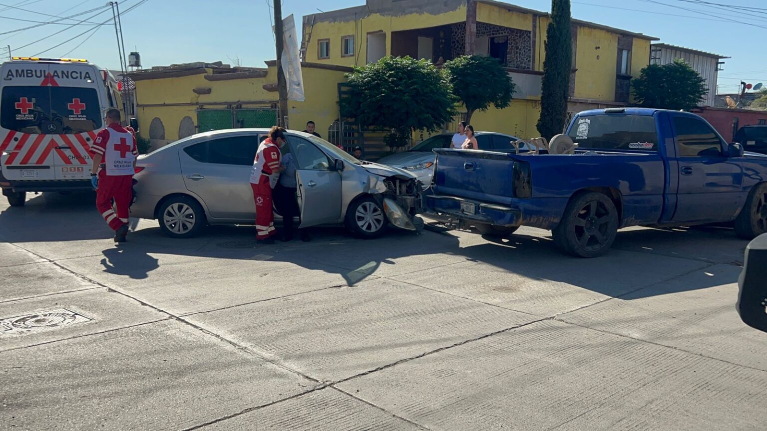 Fue en la calle Mina San Carlos, donde el conductor de un vehículo Nissan Sentra terminó impactado con una camioneta Chevrolet color azul. Al interior de la unidad quedó herida la mujer, la cual fue atendida por paramédicos de la Cruz Roja, quienes la valoraron para conocer si era necesario trasladarla a un hospital.