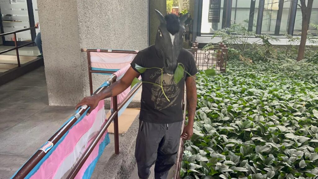 El abogado estuvo acompañado por Luis, un joven de 28 años que señaló identificarse como caballo desde los 14. Luis pidió comprensión y respeto hacia su identidad, al señalar que este tipo de expresiones suelen ser motivo de burlas y violencia. Incluso saltó el barandal protege los jardines del Congreso para “comer” hierbas como un equino.