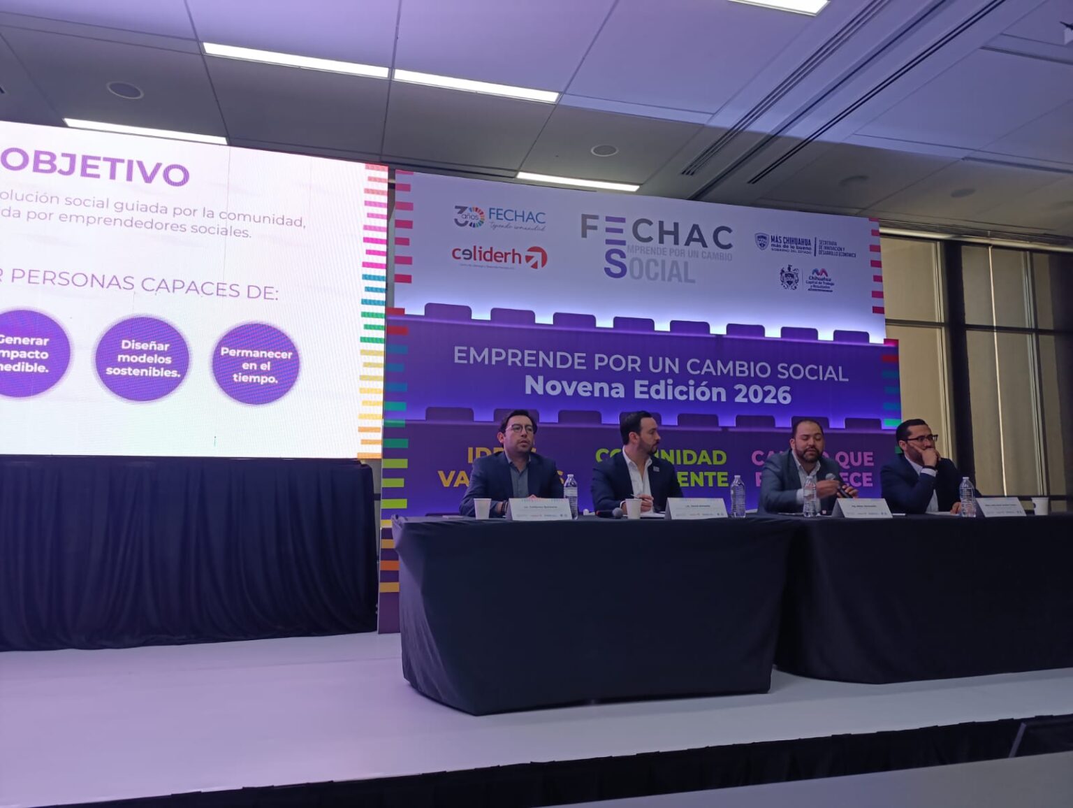 El evento contó con la participación de David Almeida, Director General de la Fundación del Empresariado Chihuahuense (FECHAC); Héber Hermosillo, Director del Centro de Liderazgo y Desarrollo Humano (CELIDERH); José Jordán, de la Dirección de Desarrollo Económico y Competitividad del Municipio de Chihuahua y Guillermo Quintana, Director de Emprendimiento y Desarrollo Empresarial de la Secretaría de Innovación y Desarrollo Económico del Estado de Chihuahua (SIDE), quienes destacaron la relevancia de este esfuerzo para fortalecer el ecosistema de emprendimiento social en la región.