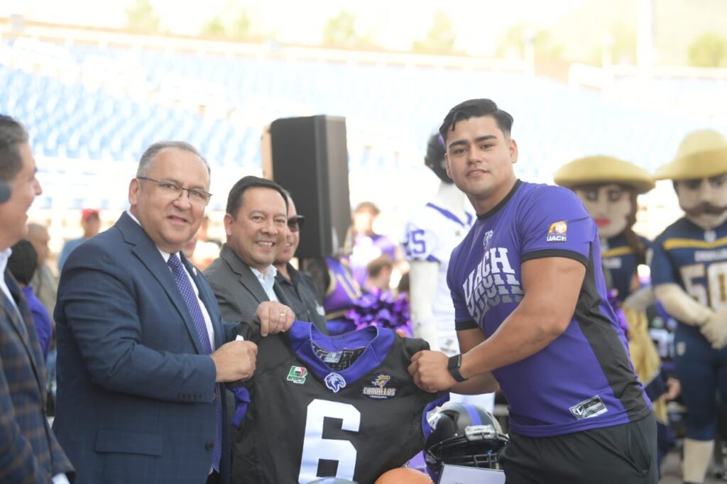 Finalmente, una vez entregados los uniformes el rector de la UACH, Luis Alfonso Rivera Campos, les externó; “ustedes comienzan un nuevo capítulo dentro del emparrillado, forman parte un equipo con una gran historia en el que muchos jóvenes sueñan estar, el uniforme que a partir de hoy portarán se lo han ganado con entrega, pasión y amor por su Universidad, salgan a defenderlo y a escribir con letras de oro su participación en la temporada 2025. A la comunidad universitaria les digo que seguiremos trabajando incansablemente para garantizar Más Águilas, Más Deporte y Más UACH”.