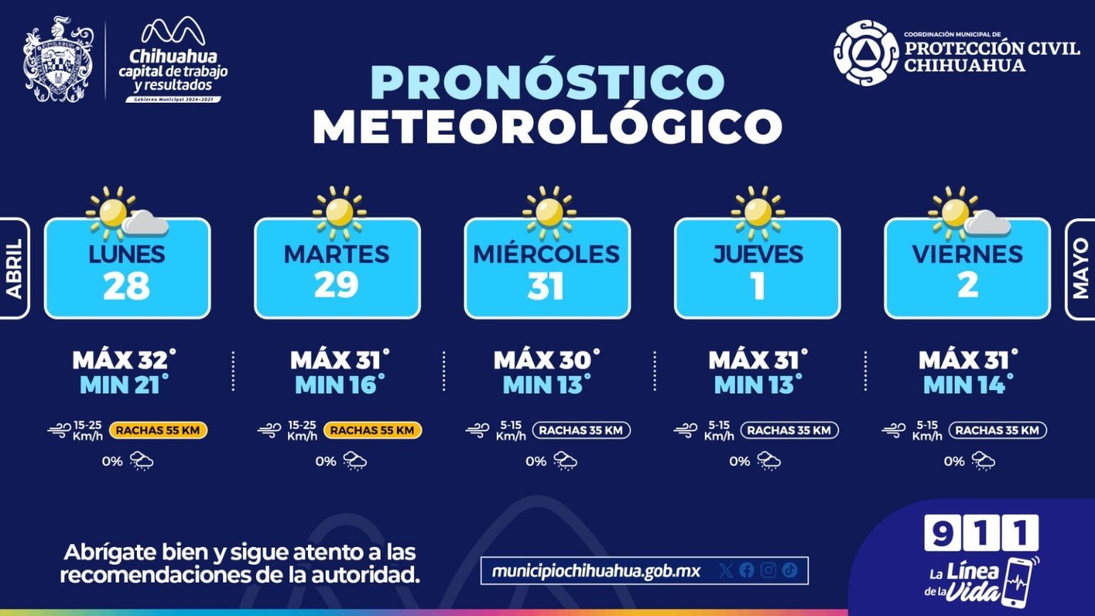 La Coordinación Municipal de Protección Civil informó que, esta semana prevalecerán días calurosos con temperaturas de hasta 32°C por lo que exhortan a cuidarse y tomar suficiente agua a fin de prevenir la deshidratación.